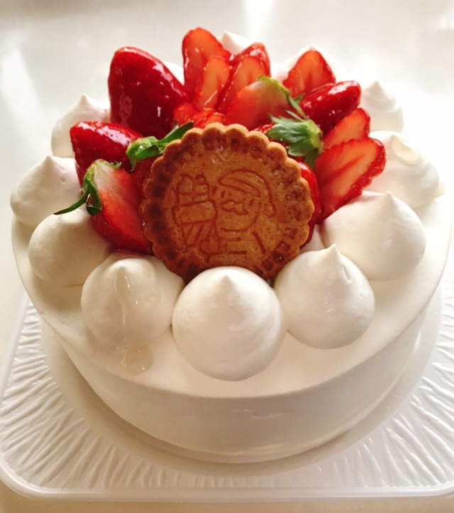 写真二枚目はこちらの15㎝のスポンジを使い純生クリームといちごでデコレーションしたケーキです。